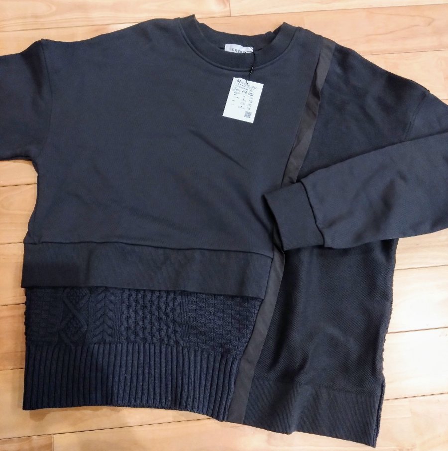 【SALE/20%OFF】LASUD ニットドッキングスウェットプルオーバー ラシュッド トップス スウェット・トレーナー グレー ブラック【送料無料】