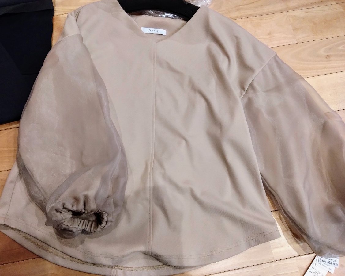 【SALE/49%OFF】FENNEL オーガンジースリーブプルオーバー ヴァン トップス カットソー・Tシャツ ブラック ベージュ ブルー【送料無料】