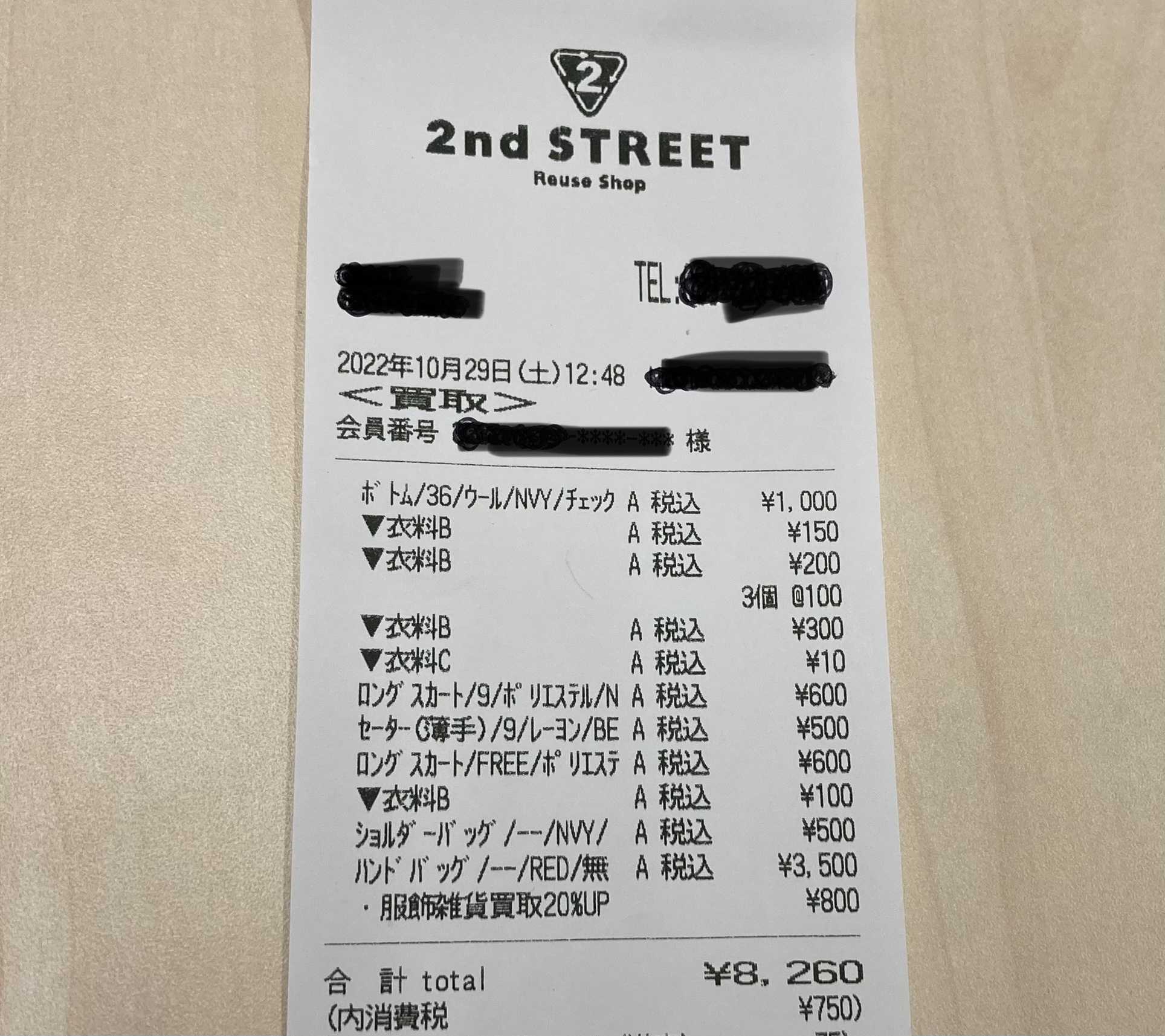 セカンドストリートへ洋服とバッグを買取してもらいに行って来ました。洋服は新品4着と状態のいいものを7着、バッグを2つ。セカンドストリートでは何回も買取に持って行ったことあるのですが、めちゃくちゃ買取金額が安いんですよ🥹いや、私がたいした洋服持ってないのが原因なんですけどね🥺それにしても買取金額が安い🫢正直メルカリで売った方が絶対にいいと思ってます😅私も昔はメルカリに出品していたのですが、ここ数年は面倒くさくなってしまって。梱包とかしっかり綺麗にするタイプなのですよ私🙂それをするのが面倒でね、、、本当やる気出せって感じなんですけど。それで捨てるよりはセカンドストリートに持って行って買取してもらった方がいいので、最近はずっとそうしてます。今回は洋服11着とバッグ2つで買取価格は2000円くらいかなと予想🤔買取できないものは返されるので、返されたらどうしようと怯えながら査定を待ちました🫣それでは結果発表!!11月13日までキャンペーンで買取20%UPをしていたので、合計8,260円でした。予想よりよかったわ。意外😳レシート上からボトムはトゥモローランドで2回くらいしか履いてないものが1,000円。衣料Bはおそらくローズバッド、ロペピクニック、Visのトップスかな。衣料Cは10円!!!わーーーーい🤗ユニクロのボトムかも。全然履いてないやつ。ロングスカート2着とセーターはスコットクラブの福袋に入ってたやつ。値札(全て1万以上)が着いたまま、袋に入ったままのもの。うん、めっちゃ安いショルダーバッグがムルーア。外も中も綺麗だけど結構使ったから500円買取ありがたい🙏そして今回一番の高値だったのがトリーバーチの大き目のトートバッグ。トリーバーチは6年くらい前に買って、しかも1年使い込んでたから3,500円は嬉しかった。表面も中も綺麗だけど、持ち手や裏側がちょっと汚れてたからなぁ。よかった☺️私は楽だから今後もセカンドストリートで買取してもらうと思うけど、実際売るならフリマアプリの方が良きですね🙋♀️✨とりあえず、整理できてスッキリ✨✨