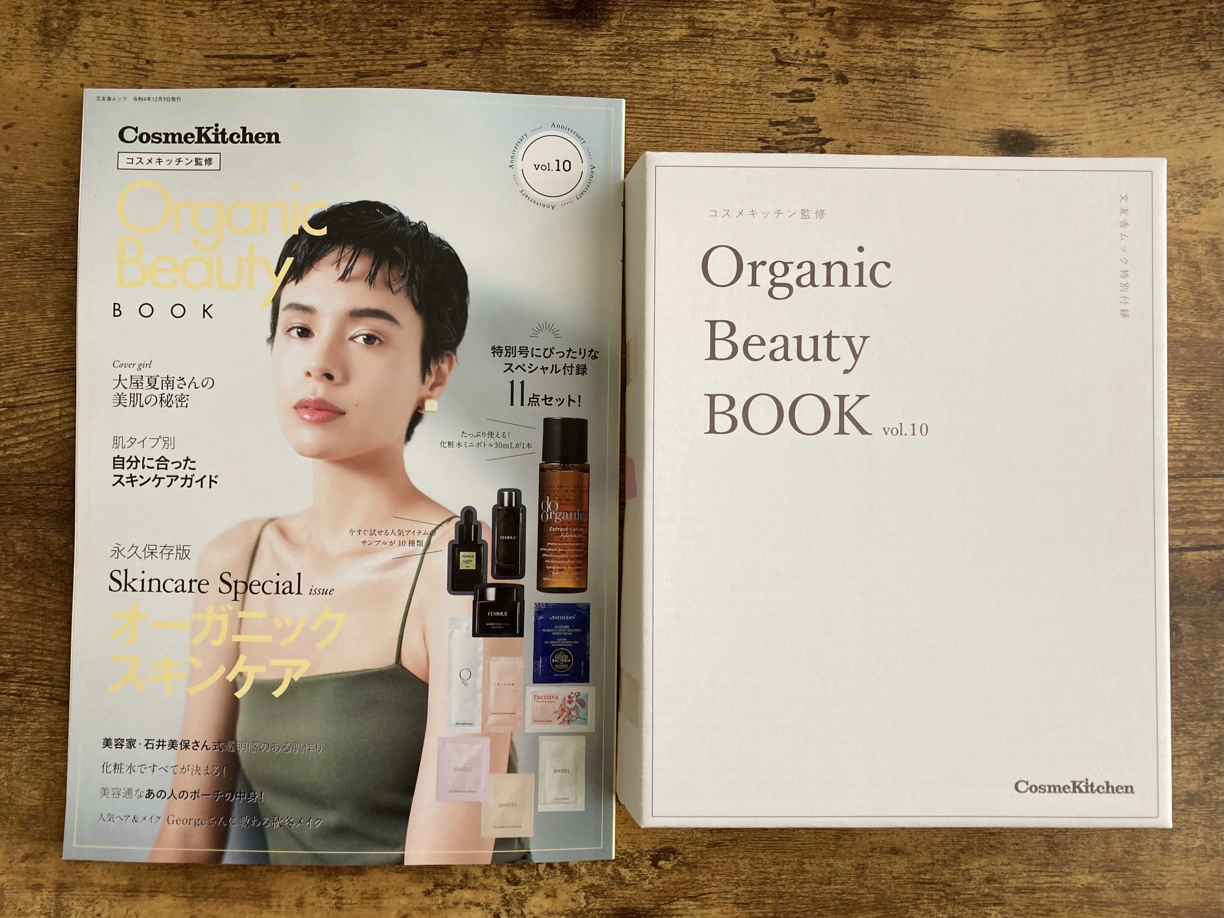 11月9日発売のコスメキッチン監修Organic Beauty BOOKの第10弾✨予約していたので、9日に我が家に届きました∩^ω^∩今回は第10弾を記念して、スキンケア特集号になってます🌹表紙はモデルの大屋夏南さん💕綺麗ですねぇ😍インタビューも読み応えあり✨自分自身への向き合い方が丁寧で誠実で、、ため息でちゃうくらい素敵ですね🥺そして楽しみにしていた美容家 石井美保さんの特集。スキンケアの極意について、楽しく読ませて頂きました☺️他にもリアルに使ってるポーチの中身も紹介して下さってました〜∩^ω^∩嬉しいぞ✨✨また今回なんと!石井美保さんセレクトスペシャルキットがコスメキッチン数量限定で発売中👏そのアイテムについて、昨日11月10日に石井美保さんのインスタライブがありました✨✨昨日リアタイ出来ずに今日見たのですか、めちゃくちゃ可愛いしアイテムについても詳しく説明して下さって、とても楽しかった〜〜😆✨✨アーカイブが1週間残るそうなので、是非見てほしい🥺♡石井美保さんのインスタライブ♡豪華な付録も満足感あります💪並べてみる。個人的にスナイデルを使うのが楽しみ💕ひとつひとつ楽しませて頂きますよ🤪購入者限定のスペシャル特典として、Cosme Kitchen WEB STOREにて税込10,000円以上の購入で使える2,000円OFFクーポンも付いてます!!オーガニックビューティーBOOK(vol.10) CosmeKitchen それでこのムック本、1,100円なんだから破格です🫠このお得感が嬉しいよ私は🥹✨✨ ありがとうなコスキチ。【送料無料】ビープル Biople 【FEMMUE】ドリームグロウマスク(BL) ファミュ コスメキッチン