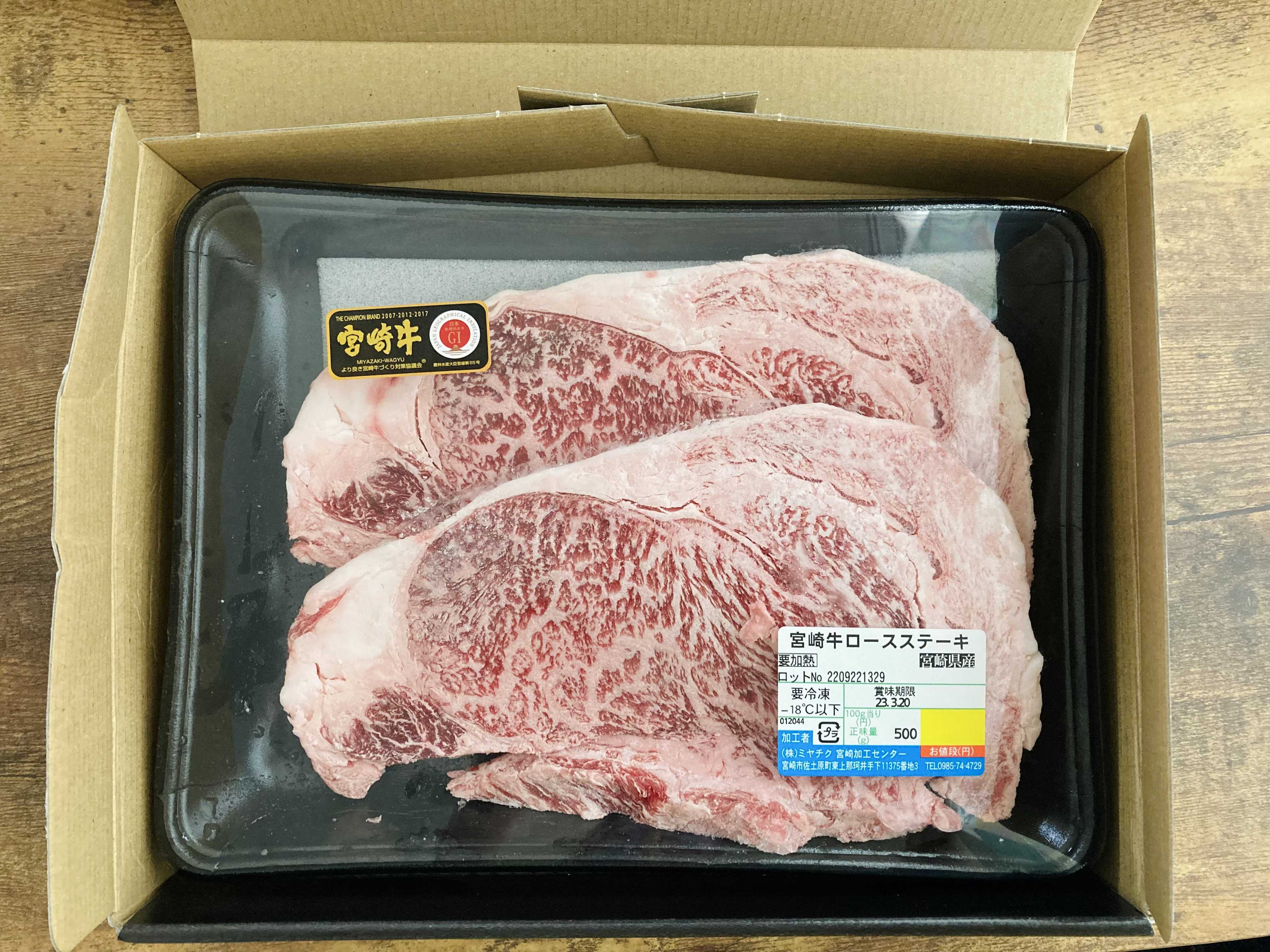 宮崎県日南市のふるさと納税の返礼品で頂いていた、宮崎牛のロースステーキを食べました🥩