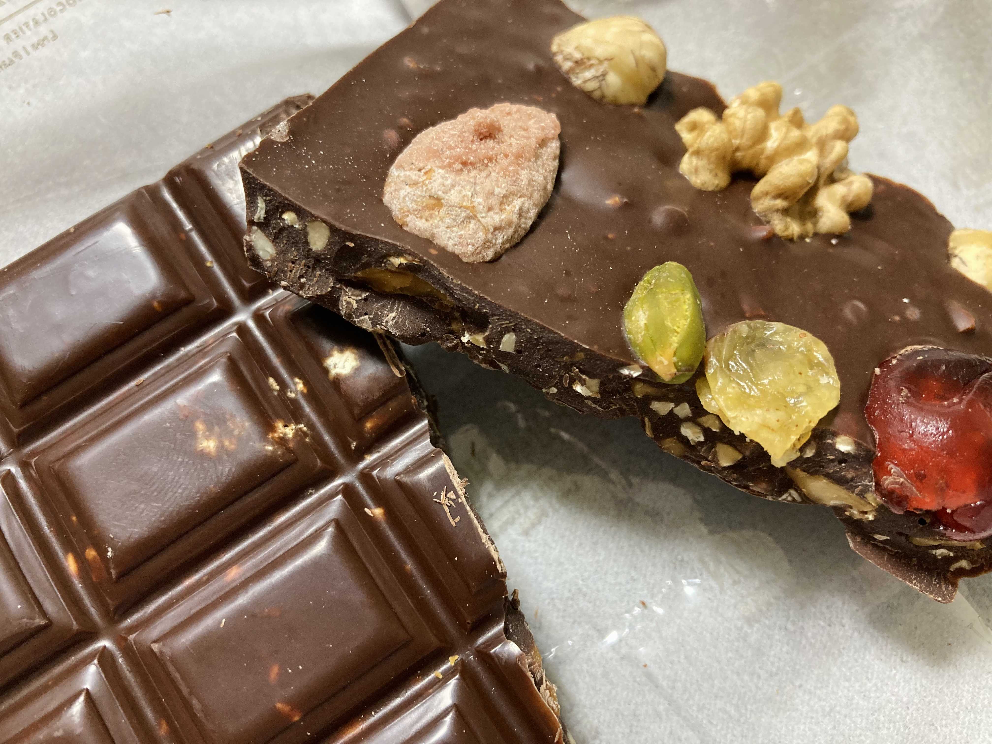 甘さ控えめなダークチョコレートに甘いドライフルーツと香ばしいナッツの絶妙にマッチして美味し過ぎた🥹