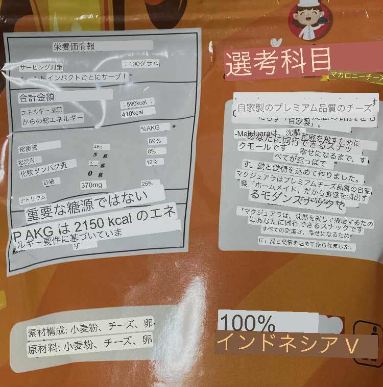 先月くらいにインドネシアのお土産でチーズ味のマカロニ型のスナック菓子を頂きました。