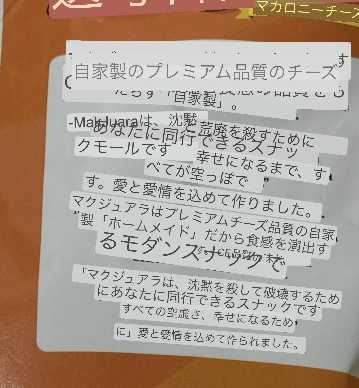 「マクジュアラは、沈黙を殺して破壊するために同行できるスナックです すべての空虚さ、幸せになるために愛と愛情を込めて作られました」と翻訳されている。