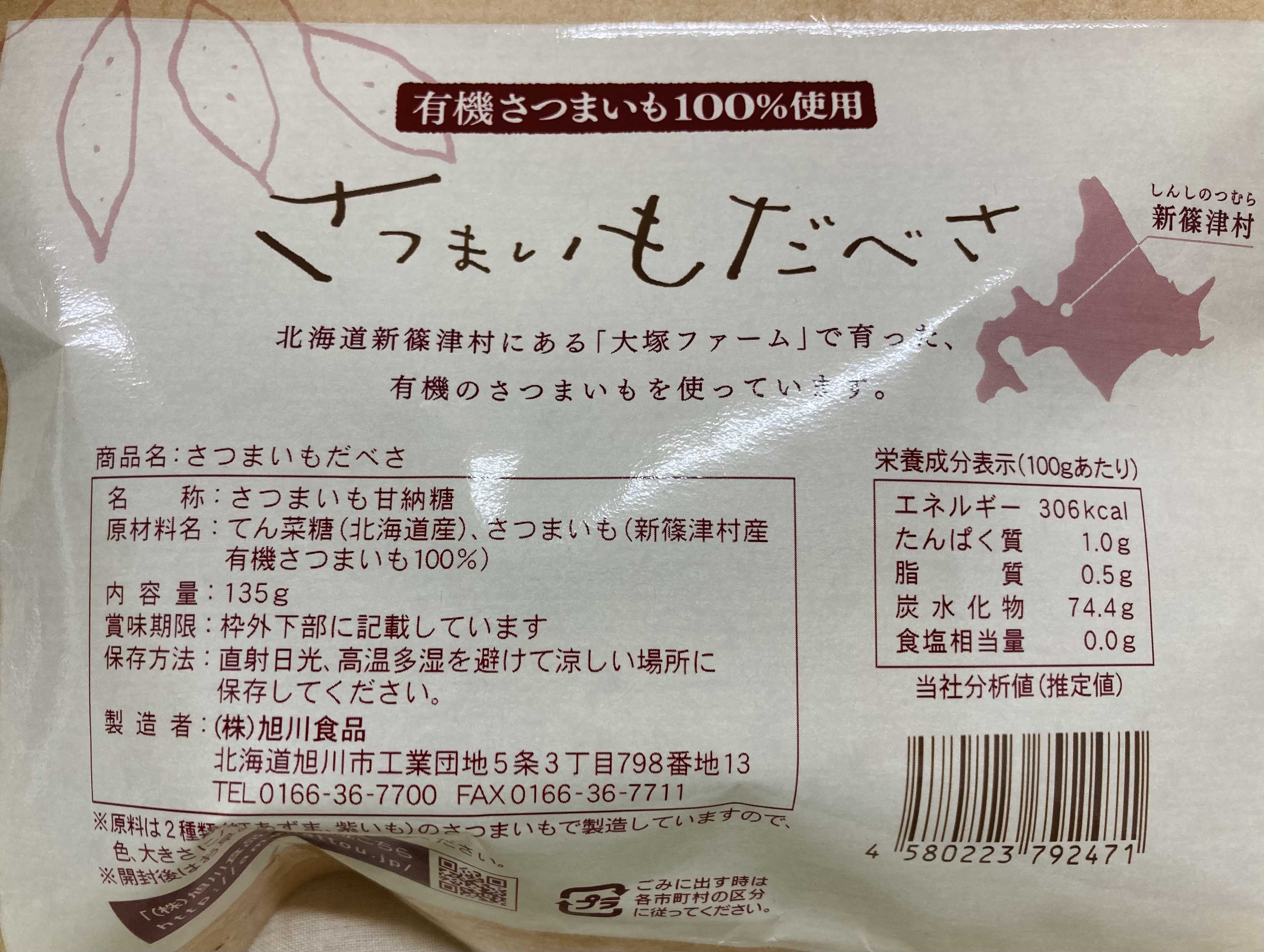 「さつまいもだべさ」しかも、北海道産!有機さつまいも100%使用