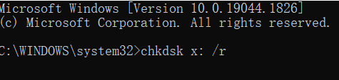 2.コマンドプロンプトで、chkdsk X: /rと入力し、Enterキーを押します。Xは、0バイトを示すパーティションのドライブ番号に置き換えてください。 ディスク全体をスキャンするには、chkdsk /rと入力してEnterキーを押すだけです。