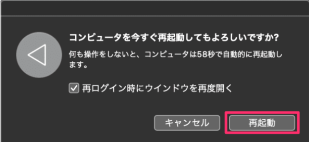 一時的なシステムトラブルが発生していることが原因で、MacBookが充電できないケースが考えられます。MacBookを再起動してみましょう。