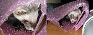 実は以前から頼まれて製作中のHPを急遽仕上げなくてはならなくなり朝から今までPCにかじりつき!!今日はブログのページ製作が全然手を付けられなかった(;へ;)cgi(←超苦手)と格闘してすでに頭はパニックです。今度のサーバーはaspが動かないのperl製作(TへT)わけわからん。ヘロヘロになってる私に我が家のフェレは容赦なく戦いを挑みにきます。狭いお家で“追いかけっこ”と“かくれんぼ”の繰り返し・・・対外私が降参して二人でその場にへたり込んで終わります(^^)なんかもっと新しい遊びはないのかなぁ~?3年間毎日だから、“かくれんぼ”は、いい加減無理があるなり。