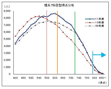 いつも、ご訪問・応援ありがとうございます。 「勝ちっ!」とひと押し 大学受験(本人・親)ブログランキング 携帯からは、ここ! 今年春に行われた受験では、全国の国公立大学医学部(医学科)の定員は合計 4242人でした。これに、のべ32740人が受験しました。 ※我々再受験生とは、ほぼ無縁の 「AO入試枠」とか「推薦枠」とかは、 これとは別になっています。 全国公立大学の医学部(医学科)の 実際の入学定員は5300人程ですので、 1000人程は、こっちの枠で入学している計算です。 「社会人枠」とか「ないす・がい枠」とかは 残念ながらありません。(-。-) 4242人は、センター試験全受験者52万7793人の内の「0.8%」です。実際は、「5教科7科目:理系」の要件も満たさないと医学部受験は出来ません。これを満たす受験者が、おおよそ「18万5000人」ほど・・・4242人/18万5000人約2.2%となります。勿論、センター試験の成績上位者が順番に全員医学部を受験するわけではありませんが、目安としては、この「上位2%」を見据えて挑まねばなりません。 「5教科7科目:理系」河合塾のリサーチに基づく表です。母集団は、40万人以上ですので、全受験生の8割ほど。母集団としては十分信頼に値します。 (ですから、実際の全受験生の分布は 左側の目盛を「1.3倍」した感じでしょう。)平均点(582点:赤の縦棒)70%(630点:オレンジの縦棒)80%(720点:緑の縦棒)90%(810点:青の縦棒)・・・とグラフを追っていくと、目指す「上位2%」は、青い矢印・・・やはり「810点(90%)」以上の部分になります。青い矢印の先を目指して踏ん張りまっせ! ☆★☆初めて訪れて頂いた方、最近読み始めた方・・・へ★☆★ 「はじめにお読み下さい~Read Me」のページを作成しました。 是非、ご一読下さい。⇒【はじめにお読み下さい・・・Read Me】 【はじめにお読み下さい・・・Read Me (2)】 【はじめにお読み下さい・・・Read Me (3)】 ※携帯電話画面からは閲覧できないようです。(TへT) 現在、工夫しております。暫くお待ち下さい。 Which do you like? 【センター試験:目標900点満点!】 1日1クリック!応援に、一口のって下さいませ! 勝ち癖を付ける為に、自ら「かちっ(勝ち!)」とクリックしてます。 ここまで来たら【かむ太郎劇場】の行く末を とことんお付き合い下さいませませ。 今までの最高順位は、「1位/1016サイト中」です。 ヽ(゚◇゚ )ノ