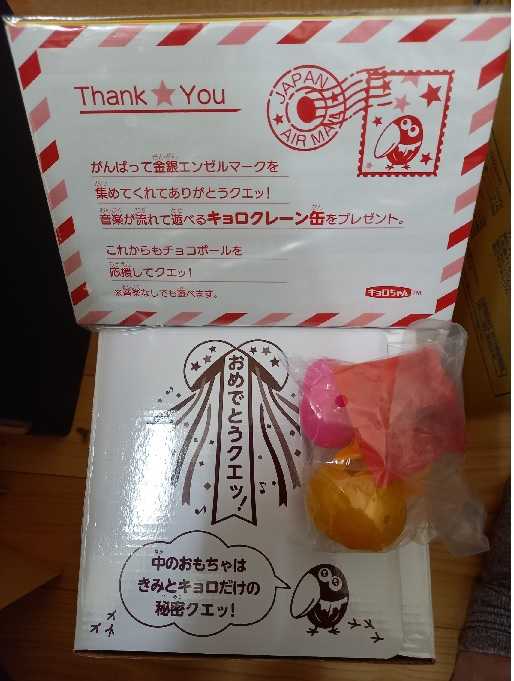 今年も、当然やってきました。キョロちゃんです。 ↑毎度毎度のご挨拶状とクレーンの景品今年のキョロちゃんは、キョロクレーン です。昨年の「キョロガチャ」の流れでしょうか今年はクレーンになりました。 ※「キョロガチャ」の 融資 雄姿は、 ↑嗚呼!普段から資金繰りに苦慮している証が・・・ ココ ⇒「2004年5月18日:今年のキョロちゃん~キョロガチャ缶」 ↑今年の箱のデザインはシンプルになった。 ↑クレーン部分毎年コレクション用と放デイの子供たち用、にここ数年は毎年2個ずつゲットしてきたが、 ★人気になったらなったで、取り合いになる。 ★人気が無いと罵詈雑言が飛んでくる。 いずれも、最初の目論見(私がヒーロー!)通りにはならず、意気消沈することになるので、今年からはコレクション用の1個のみ。(-。-)