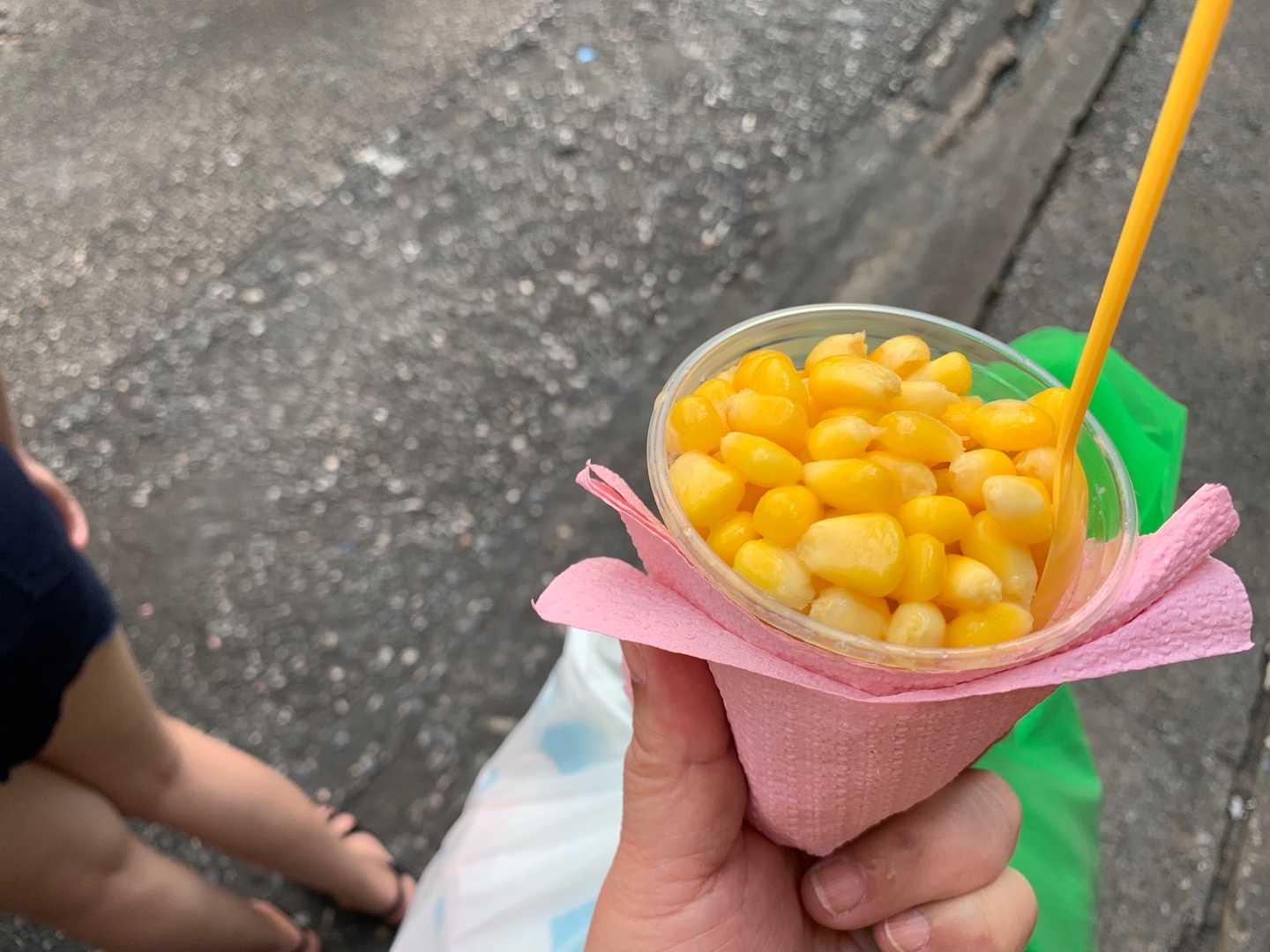 ラスト屋台、トウモロコシ(粒が凄く巨大)のバター&コンデンスミルク掛けが、超超美味しかった!
