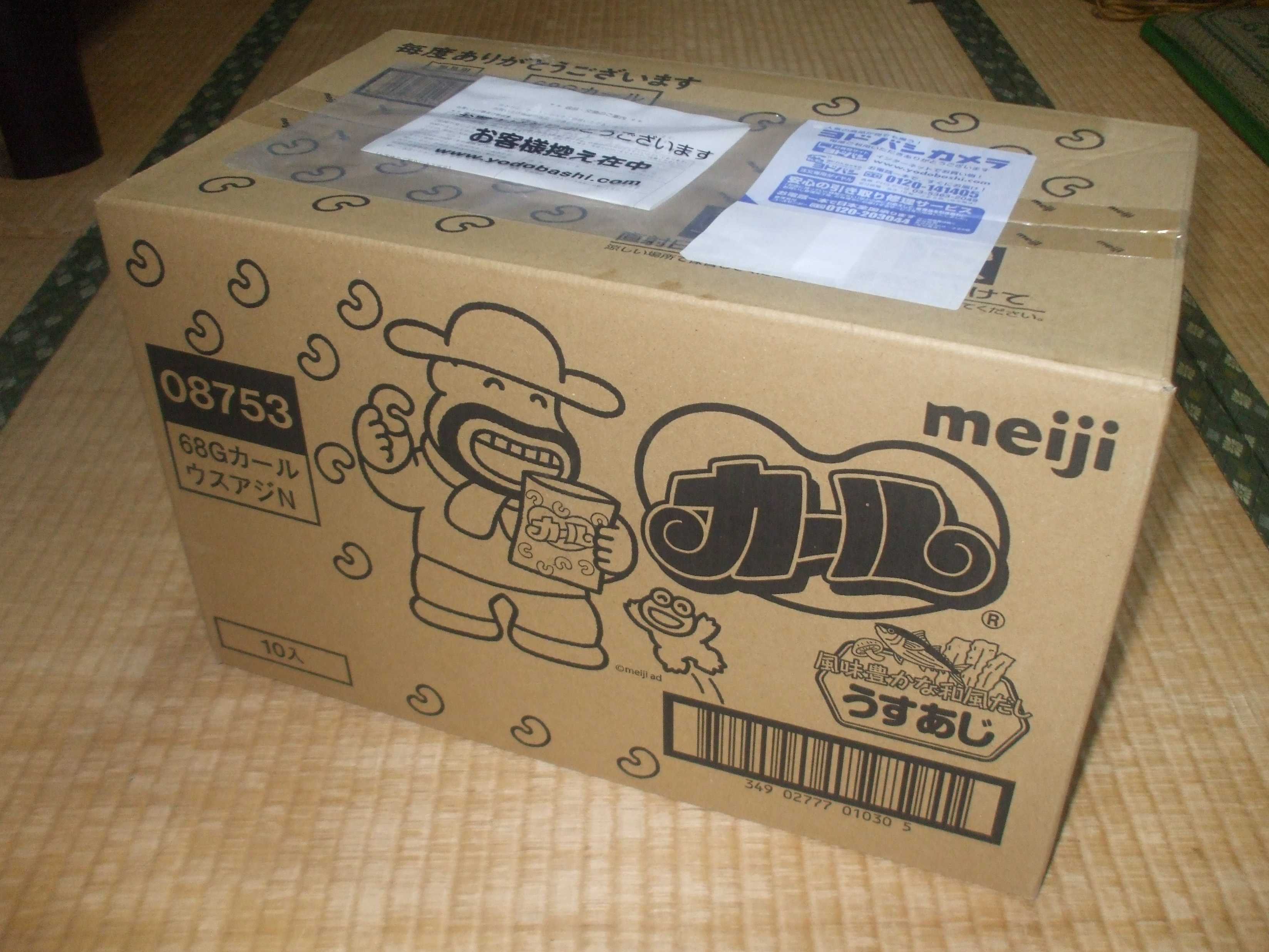 先日のお買い物マラソンで購入した、商品の数々を紹介していこうと思います。まず一つ目は、明治のスナック菓子「カールうすあじ」です。箱買いしました。現在では、チーズあじとうすあじの二種類が販売されていますが、後者になります。写真は、ヨドバシ・ドット・コムで買った時のものですが、楽天市場でも購入しました。どちらのショップでも、同じくらいの値段で販売されています。もちろん、送料無料です。価格は1袋、税込192円でした。10袋入り一箱で、税込1,920円になります。ひと昔前と比べると、かなり値段が上がっている印象を受けますね。もう東日本では販売されていないので、このくらいの値段が妥当かとは思いますが…。たまになら買っても良いレベルかな、と。チーズあじ派と、うすあじ派。どちらかと言えば私は、うすあじ派です。箱買いをしている時点で、分かり切っていることですね。あはは。サクサクした食感と、和風だしの味わいが、癖になる美味しさです。YouTubeの動画を観ながら、食べることが多いですね。また東日本でも、販売を再開してくれないかなーと、密かに願っています。あまり食べ過ぎると、太るかな…。なんて、少し心配。☆最安値☆明治カール うすあじ 1箱 10袋入り お菓子 スナック お茶請け 68g イベント パーティー↑こちらにある、楽天市場のショップで購入しました。送料無料で、一番安いお店だと思います。九州の福岡県から、届けてくれました。楽天市場とヨドバシ・ドット・コム。その時の気分で、買うお店を選んでいます。お買い物マラソンに参加するなら、お得なショップだと思いますよ~。↑人気ブログランキング当サイトは、ブログのランキングに、参加しています。
