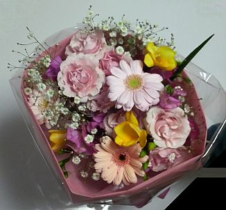 明日は~”母の日”という事で車で約40分の所に住んでいる母親の元に行って来ました♪まーぁ、近いといえば近いのですが中々行く用事も無いって事で・・・奥様と久しぶりのプチ帰省となりました。もちろん”母の日”といえば定番のカーネーションですがガーデニングや色々な花が大好きな母のためにと奥様セレクトで『ピンクのミニバラ&???』の鉢植えセットをプレゼントしました。(あくまでイメージですが・・・。)そして、母の日仕様のホールケーキで日頃の感謝をお祝いしました!さすがに・・・売ってる物ですが車での移動中に一部食べたようにクラッシュしちゃいました!さすがに、普段から親孝行な事も一切してませんが親父が亡くなってからは・・・奥様と3人でささやかな記念日のお祝い?!を一緒に過ごすようにしてます。
