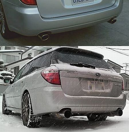 今日は、朝から雪が降り続いています・・・天気図を見ると東日本に掛けて、またもや低気圧が団体でやって来てるよーですしそんな中~今日も元気に車を運転し、例の”マフラー”を交換しに行って来ました♪ちょっとした知り合いにお願いし、寒い中・・・すっかり最後までやってもらっちゃいました。上のが純正マフラーで少しオーバル形状になっています!下が装着後です。ナンバープレートの上に寒さでツララが出来ちゃっています!大きさもUPし~出口がΦ120mmといいますから、軽く手がグーのまま入ります!音はといいますと静かな低音の響きで、発進時に申し訳なさそーに”ブォ~ッン!”っていうくらいですが、回転数が約2,500rpmを超えると豹変しスポーティな”フッォーン!!”とカン高い音色に変わり音量もボリュームアップしてきます♪(奥様が横に乗っていたので・・・アクセルは押さえ気味でしたが)これからも課題が山盛りでありますが~少しずつ手を加えて楽しみます☆