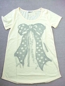 Rio Rioさんの水玉リボンチュニックTシャツが届きました。タイムセールでなんと800円でした!ホワイト、グレー、イエローのなかで、イエローが一番イラストが一番薄めでした。大きなデザインなので、逆に薄い方がいいなあと思って。画像通りで、実際も可愛いです。丈も長めで着心地も良いですね。でも結構生地は薄め。中にタンクトップなどのインナーは必須です。でも、どうせあわせて着るつもりだったので^^とっても可愛いのですが、、、、、ポリエステル65% 綿35%なんですよね。個人的には綿100%だったらもっと良かったのになあ。。。と思います。今は1,000円で送料込みです♪それでも安いけどね!【メール便送料無料】大きい水玉リボンのプリントがとってもキュート!かすれプリントが控えめ...価格:1,000円(税込、送料込)