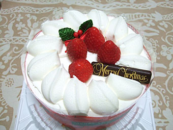 実家でクリスマスをして、5000円のケーキを食べたので24日は何もなく過ごしていたのですが、遅く帰宅した主人の手には、ケーキが。どうしたの?と聞くと職場の人にもらった、って。ええええ~~~~~!!とびっくり。まさか2日連続ケーキが食べられるなんてこちらのケーキもおいしかったですよ。ありがとうございます食べすぎですね・・・・(笑)