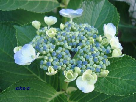 藍い 想いこれから何色に 変わってゆくのだろう雨を 知って陽射しを 浴びて素敵に咲いてくれたら いいな・・・*:.。..。.。o○*:.。..。.。o○*:.。..。.。o○*:.。..。.。紫陽花の季節。あちこちに色んな花を 見つけると雨に濡れて 可憐で・・・綺麗で・・・うれしい気持ちに させてくれる。高い場所から 下を見ると傘の花・・・梅雨には 梅雨の楽しみ(o^―^o)
