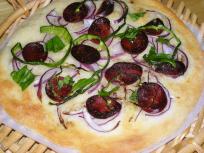 スペインのピザともいわれているコカを焼いてみました。トマトソース、トッピングのチーズなしというシンプルさが結構好評です。生地は箸で混ぜ混ぜしたら、ひとまとめにして膨らむのを待つだけ。赤玉葱、ピーマン、サラミ、パプリカ、プルーン、モッツアレラチーズなんかをのせてオリーブ油をかけてオーブンで焼くだけなのですが、熱々も冷めても美味しいコカです。 赤玉葱とピーマン、サラミ、バジルのコカ、プルーンとモッツアレラチーズ、サラミにローズマリー、そして焼いている途中で思い出した庭のブルーベリーも参加のコカ。 パプリカは丸ごと直火で黒こげにしたら紙袋に入れて蒸らして手で皮を剥きます。そうすると甘・甘なパプリカに変身。マリネやサラダにも重宝します。コカを焼きながらバジルやローズマリー、ブルーベリーを摘みに庭に行ったりと忙しく焼きましたが、シンプルながらも意外にも美味しいコカ、暫くはまりそうです。泡を片手に~