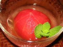 家族誰一人起床してない時間〔いっつもなんですがね!〕にチャイムと共に、ご近所さんの菜園から直送のもぎ立てキュウリが届きました。朝早く収穫されたキュウリは絶品です。もぎ立て胡瓜ですが朝からビール酔い、ビール漬けとなりましたがーーー検索したレシピを伝授した私が悪かった。悪酔いさせてしまったような即席漬け状態、漬け液には間違いはございません材料の胡瓜が足りなかったというか・・・です。でもでも残った漬け液はまだまだ活用できるので胡瓜とセロリ、ニンジンと共に☆ボリジに代わりビールに酔ってもらおうと思ってます。 冷蔵庫にあった胡瓜も充分新鮮なんですけど、もぎ立ての胡瓜には敵わない。ので~干された。前回同様こちら、我が家のヘソ大根のお師匠さまのブログ。ニンニク多めの豚肉と共に炒めたのも美味しかったですが、蛸と炒めたのも旨っ。残った炒め物は冷蔵庫で冷え冷え、チョイト夜中に生干しされたキュウリの食感がパリパリで泡が~~~欲しい。けれど原因不明の蕁麻疹と掻痒に悩まされているので泡は 生干しにしたキュウリは程良く水分が抜けているので、炒め物苦手なマミーでも火力云々のせいにしなくとも上手く炒められるようです。節電モードなのに冷夏〔?〕そんな気温続きですので喘息だって調子が悪くなる。しかも~薬なのか食べ物なのか原因不明の蕁麻疹と掻痒感。。。 だから白ワインに酔ったトマトのコンポートでアルコールが飛んだ白ワインを吸収してます。シロップで作った氷擬きのゼリーを浮かべて涼しげな演出、でもねぇ~気温が低いんよ