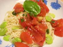 親父の顔を見る度にクスッ、アハッハ普段から笑える顔なのには相当長い関係なので慣れましたが、ところがですねぇ~額に縦に一筋の傷ができ、しかも出血したようです。原因はと思っておりましたが、その時一緒にいたのもらしく、抱っこして歩いていたらドーンと壁だか柱に激突したらしい〔爆〕表層以外に未だ特別な変化は無いようなので放置らしいです。激突した瞬間のの反応はといいますと、親父の腕から逃げずに抱っこされたままだったとか! もう少し養生してからと止めましたが、ワタクシの同級生のママが経営する床屋さんにカットに出掛けた親父。1000円カットではありませんが、普通の床屋さんよりかはサービスしてくれるようです。たまたま移動販売の魚屋さんが床屋に寄ったそうで、親父のヘアカット代より高いタラコです。の仕業かと思った傷、激突したと聞いて日々、笑いの素が早く治ればと(笑) 生パスタですが冷製パスタにもおススメとの表示から隠し味の白だし入りで登場しました。今夏カッベリーニよりか生パスタでの冷製パスタにハマること間違いなしの予感。海藻原料のプチプチ食感の春雨状のものとトマト、枝豆豆腐は今回は紫蘇をのせてオリーブ油ベースの和風ドレッシングでアッサリ サッパリと頂きました。生パスタとチョッと贅沢なオリーブ油に惹かれて買い忘れたモッツァレラチーズ、今度は生パスタとチーズ共々忘れず買ってこなくてはとマミー