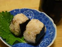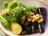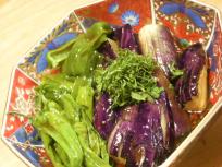 6日目のシバ漬けの液が山葡萄ジュース色になってきました。濁りがあるのはまだ植物性乳酸菌が増殖していない証拠なんでしょう。紫蘇の味が強く酸味が出始めたといったところです。地元にも植物性乳酸菌を利用した茄子紺色を抜いて漬ける『ぺそら漬け』がありますが、日に日に茄子が軟らかくなることから、シバ漬けも発酵が強まると野菜が軟らかくなるんでしょうね アッサリしたものを欲しているようなので冷たいお茶漬けにして貰いました。完成まで1ヶ月じっくり漬け込むシバ漬けだそうですが、チョッと味見。まだ茄子が固いですが冷たいお茶漬けがサラサラ進む味でした。なにやら益々美味しく完成する予感がしてなりません。そして『だし』ミョウガは欠かせないものと実感。タッパーに作り置きしてあります。炊飯器保温で作る梅とアンズの甘露煮、偽イチジク煮の胡瓜の砂糖煮、紫蘇ジュースの茹でた紫蘇とチリメンジャコ、山椒の実で作った勿体ない佃煮、胡瓜の浅漬け、胡瓜の佃煮など冷蔵庫のタッパーから総動員。 市販の丸茄子の瓶漬け、値段共々納得です。ついでに、この瓶を利用して作れるよん♪とマミー皮の軟らかい薄皮丸茄子がおススメ。今年は全てマミー任せです。丸茄子の瓶漬けのレシピ