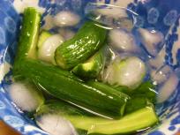 ビール漬けの漬け液はバッチリでしたが、途中間違って伝えた私のせいで野菜が足りなかった。なので~即、塩辛い漬物が完成。氷水に浸して酔い醒まし〔?〕塩分を抜いて胡瓜のビール漬けは美味しく頂いております。し~かし大量にビール酔い〔?〕塩辛い胡瓜漬けがあるので、そちらは砂糖水に漬け替えて、いい塩梅になりつつあるようです。間違いのなかった漬け液は次の野菜を待ち構えてます。薄皮丸茄子の瓶漬けもいい感じです。 夏にキムチ鍋なんて罰ゲームでもなんでもありませぬ。気温が食思まで変えてしまってます。 キムチ鍋の〆はカムジャタンもどき。エゴマの葉もまして豚の背骨も入ってませんが、キムチ鍋の美味しいダシが残っている汁にカムジャ〔ジャガイモ〕が入ってるので、まぁ~いいでしょうドーンと背骨無しの鍋、脊椎の悪い☆ボリジ向けのカムジャタンといったところでしょうか
