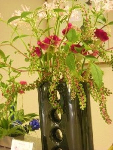 いつもご訪問、コメントありがとうございますの今週のお花にヨウシュヤマゴボウが使われてました熟すと葡萄と見間違えるような色になり汁までも葡萄色 インクベリーと呼ばれるのも納得アレンジ材料としてショッキングピンク色に色付いた枝のみもそして写真のような枝もお花屋さんに並びますがひと夏で大木に成長し近年増え続けているのでアチコチで見かけることかと我が家でもお隣さんとの目隠しに残してあります ヨウシュヤマゴボウは有毒植物花言葉が野生、元気、内縁の妻ときましたかぁ~先日届いたドライ花材の中にも青い実のドライも入ってましたがどんなアレンジに使いましょうか お漬物に使われている山ゴボウはモリアザミの根ですのでヨウシュヤマゴボウではありません 我が家のホーカス・ポーカスは季節がらミニバラと呼べるサイズ休みもせず花を咲かせてくれますが最近は赤みが強く出てます数本ドライにしてみました楽天レシピの浅漬け部門1位人気レシピのまとめ、チーズケーキにポテサラ・・・に次いで袋で揉み込む浅漬けいつもありがとうございます