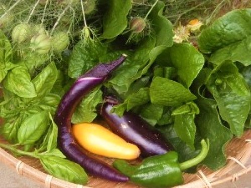 いつもご訪問、コメントありがとうございます株の充実を図るために茄子とメガピーマンの初収穫をしました未受粉のズッキーニも限界のようでしたので収穫病害虫の心配もなく気温と共にワサワサと茂ってきたツルムラサキも初収穫チョッとクセがあって苦手なんですがマミー実家では茹で干しして出荷してましてそれがそれが戻して炒め煮にするとクセがなく何の野菜なのか見当もつかず 夕方の涼しくなるのを待ってのお庭ご飯では親父と甥っ子と一緒に買って来たトマトバイキングからのトマトオレンジ色が一番甘くて好評でした 新鮮な野菜は畑からも~手招きされて頂いてきた連打さんの大根糠漬けと お膾にして頂きました 感謝
