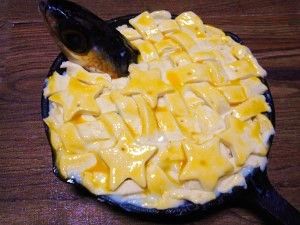 トビウオを使って、スターゲイジーパイ、星を見上げるパイ風に