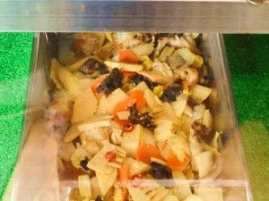 シメジ、ニンジン、葱、コンニャク、ゴボウ天、ヒジキ