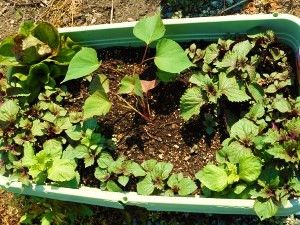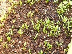 こぼれ種の赤紫蘇(香りの強い裏赤紫蘇)が育ってきたので移植作業必要