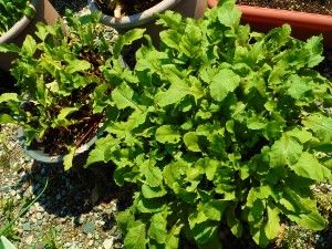 奥はサラダ用赤蕪 手前は苗で購入してきたレタス