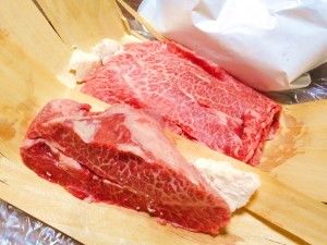 今回も山形牛のミスジを薄切りにして頂き煮込み料理用にはブロック肉で