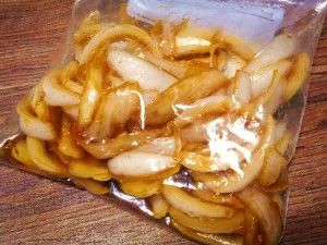 新玉葱を醤油プラス米油又はオリーブ油漬け