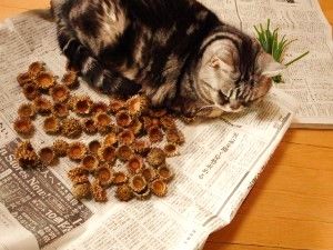 ドングリの傘は防虫の為に茹でて乾燥