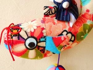 偶々顔部分に現れた紐模様に合わせて紐の持ち手を付けた​ 鯉のぼり​