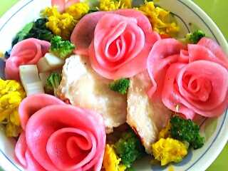 白大根に1割の紅芯大根を加えた甘酢漬けと