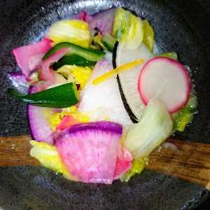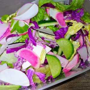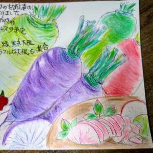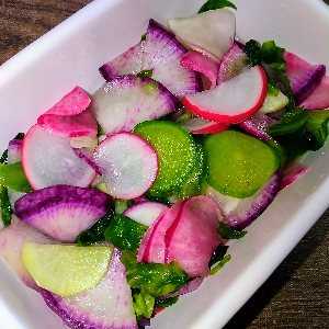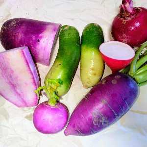 紫大根に緑(ビタミン)、赤(紅化粧)、黒丸大根