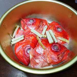 届いた ​​ 金目鯛の兜 ​ は新ゴボウと兜煮