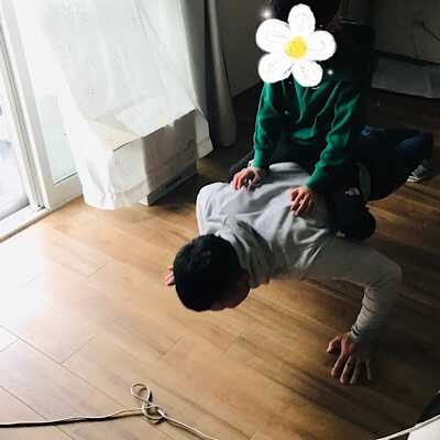 スレンの腕立てに付き合わせる笑