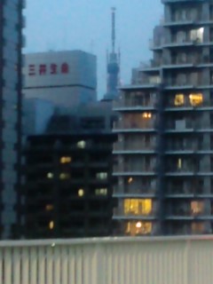 ■赤い倍音の月の年 太陽(9)の月13日 7・赤い蛇の日 KIN85 銀河の活性化の正門 陰暦如月15日新大橋から見たスカイツリーです。