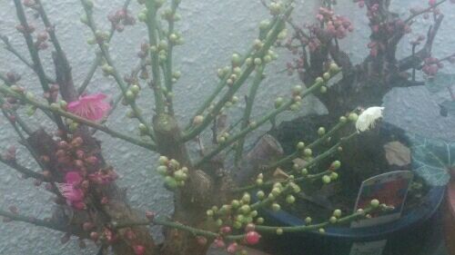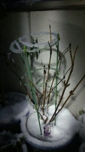 幸い今週末の東京は雪は免れたものの、今週はじめの雪に対しては、数年前の大雪にこりてイチゴにビニールのカバーかけようかとか、梅の盆栽を避難させようかとちょっと迷いました。まっ、夜中に様子見て判断すればいいやと決めて寝ましたが、夜中に起きてベランダを覗いたらそんなでもなく雨に変わってたので放置決定。夜中に見たらアジサイの支柱のワッカに雪が積もってシルバーリング状態。雪中梅っていうんでしょうか、ちょっと風流です。シクラメンにも積もってます、あたりまえですが。ヒヤシンスの芽がかなり大きくなりました。もうひとがんばりです。