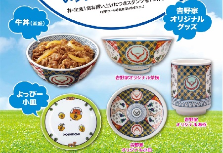 5/7に行ったら久々にグッズプレゼントのスタンプカードをもらいました。サイトの告知を見ると、あれ、去年人気だったマグカップが無い。店で見ていたら結構マグカップに交換する人が多かったので、今回は前回余った他のグッズの在庫一掃なんでしょうか。これなら牛丼1杯のほうがいいようにも思います。魅力的な新グッズの登場を待ちます。お知らせ : 一部店舗限定!スタンプキャンペーン実施中!