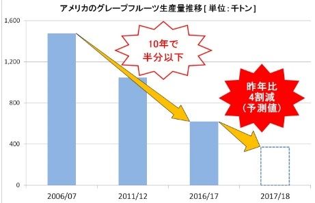 それまでオレンジジュース派だったのが、たまたまマルエツで品切れだったので、やむをえず紙パックの128円のグレープフルーツジュースを買ったらほどよい酸っぱさで一気にファンになりよく飲むようになりました。西友の自社ブランドのやつは搾りたてみたいで数十円高いけどもっとおいしいです。ところが数ヶ月ぐらい前からそのグレープフルーツジュースが忽然と姿を消しました。トロピカーナの高い248円のは売ってます。ネットで調べるとここ数年米国のグレープフルーツは病気やらハリケーンの影響で生産が大きく減っているようで、今年に限らず、品切れになることがあったようです。今年の品切れは昨年のハリケーンのイルマのせいのようです。今までずいぶん安いなと思いながらも当たり前のように飲んでましたが、地球温暖化の影響はこんなところにもでているようです。【お知らせ】フロリダ産グレープフルーツの取り扱いについて:グローバルフルーツマルエツには果実のグレープフルーツは一個94円で置いています。イスラエル産です。昔、中学生の頃、輸入が自由化されて安くなった頃、よくグラニュー糖をかけて食べてました。何十年ぶりかで買って試したら、グレープフルーツの酸味と、グラニュー糖の甘さとじゃりじゃり感が絶妙のハーモニーを奏でて至福の一瞬です。■参考リンクグレープフルーツジュースがスーパーから消えたのはなぜ?最近、グレープフルーツジュースが品薄なのはどうしてでしょうか フルーツ本体はちゃんとお店にあるのに2018.7.23.追記その後の状況です。イスラエル産とか南アフリカ産のグレープフルーツをスプーンで食べてましたが、果肉にスプーンをさすごとに、果汁が八方に飛び散り掃除がたいへんなので、今はトロピカーナ100%ジュース900cc248円に切り替えています。200ccあたり果汁0.7個分のグレープフルーツなので1箱3.15個のグレープフルーツになります。トロピカーナジュース248円<グレープフルーツ1個108円×3.15=340.2円果実のグレープフルーツ340.2円分の価値をトロピカーナジュース248円で得られるのでおとくです。味は絞りたてのグレープフルーツのようで、もう124円のジュースに戻れません。商品紹介 | トロピカーナ Tropicana2018.11.3.追記先日イオン系のマイバスケットに行ったら久々にグレープフルーツジュースが置いてました。ただし果汁50%で、容量が1リットルから900ミリリットルにダウンしてます。なんかメーカーの苦労の後がうかがえます。味は結構美味しいです。フロリダのグレープフルーツの収穫期は10月に始まるそうです。128円のグレープフルーツジュース復活までもう少しです。ちなみにこのジュースのメーカーはスジャータ。コーヒーのクリームばかり作っているわけではないようです。せっかくなのでスジャータのCMです。ラジオで時報の前によく流れていました。YouTube:'79-81 スジャータCM集