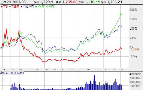 ふと気になって、ライブドアの上場していた新興市場マザーズのチャートと時系列を見ました。堀江さんの逮捕された2006.1.を境に12年経ってもまだ高値を回復していません。日経平均やジャスダック平均と対照的です。結構事件の傷跡の大きさを感じます。