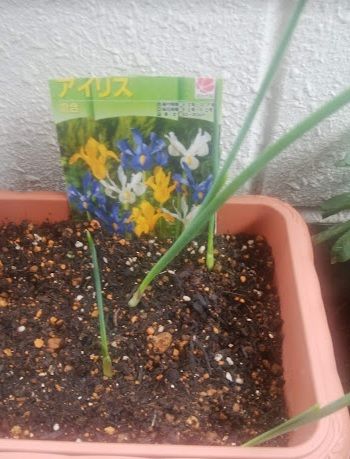 アイリスは結構背丈が伸びると球根の袋にかいてあり、この大きさのポットで大丈夫かと不安ですが、とりあえずこれでスタート。