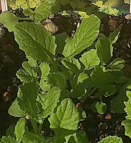 菜の花はしわしわの葉が早くも出てきました。もう少ししたら植え替えないと。