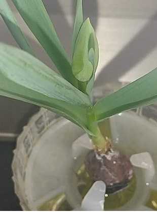 クロッカスのポッドに入れて育て、水栽培にはちょうどよい大きさに育ちました。球根がちょっと小さいので、固定させるのが少し苦労しましたが、ダンフォルディアほどではありません。水栽培にお勧めの球根です。