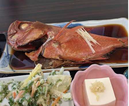 唯一の食堂のキンメダイの定食がたしか、1000円以下だったと思いますが、大きくておいしかったです。