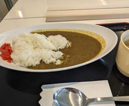 船内の食堂で食べたあしたばカレー。あしたばは溶けていて自分には他のカレーと味の区別がつきませんでした。